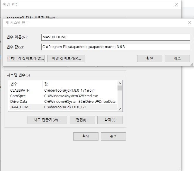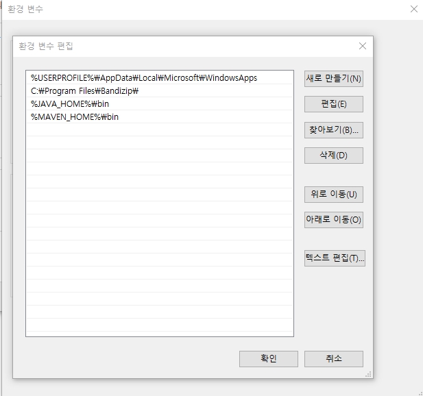 고급 시스템 설정 -> 환경변수 를 설정해야한다.