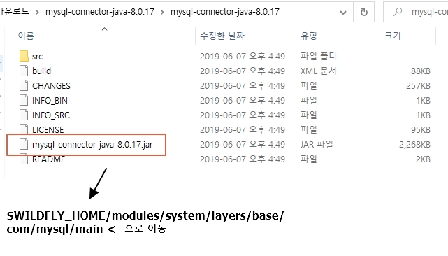 2. 압축 해제 후 Wildfly Module에 MySQL JDBC Driver 설치